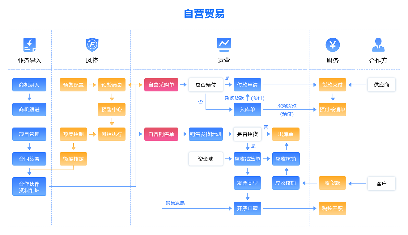 支持多種供應(yīng)鏈業(yè)務(wù)流程,打通商流、貨物流、信息流、資金流。支持供應(yīng)鏈企業(yè)內(nèi) 部數(shù)字化需求
